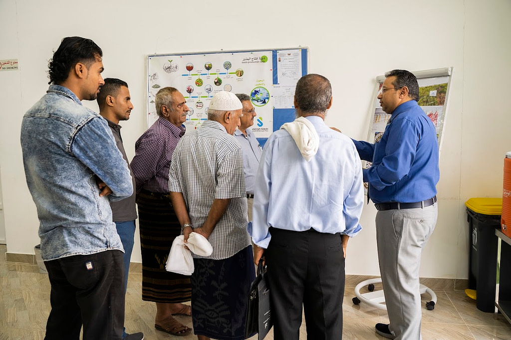 زار وفدٌ رسميٌّ من وزارة الزراعة اليوم شركة #جنةسيدز لإنتاج البذور في مدينة #عدن ، حيث ضمّ الوفد كبار المسؤولين في الوزارة بما في ذلك أ. عبدالملك ناجي – وكيل وزارة الزراعة لقطاع الإنتاج الزراعي، و أ. بدران محمد صالح – مدير عام الرقابة، و م. رشدي محمود الشبوطي – مدير عام الإنتاج النباتي، و م.وديع عبدالحبيب خبير وباحث في البذور الزراعية والأخ وسام بدران. كما حضر الزيارة كلاً من أ. غسان أبو غانم – المدير التنفيذي لبنك القاسمي للتمويل الأصغر الإسلامي، والأخ محمد العيسائي – مستشار البنك.